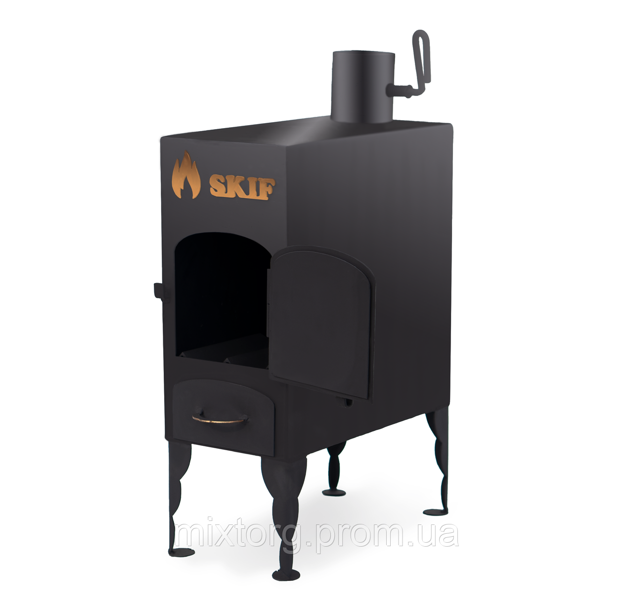 Малогабаритна дров’яна опалювальна піч Скіф 50 — компактна та ергономічна модель для обігріву приміщень до 50 м³. Має просте управління та висувний попільник, ідеально підходить для садових або дачних будинків.